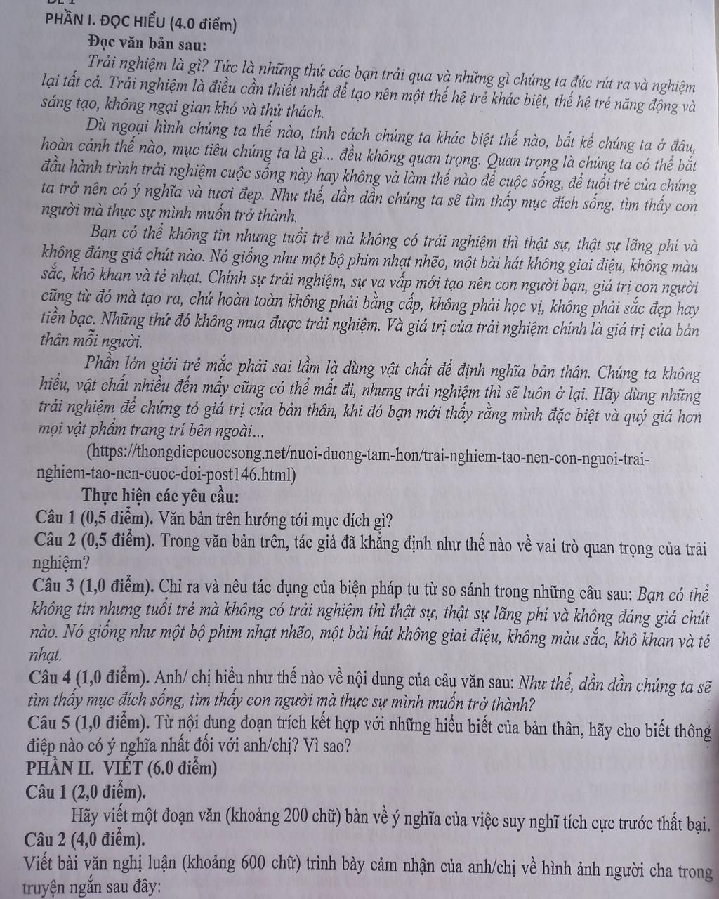 PHẦN I. ĐỌC HIỂU (4.0 điểm)