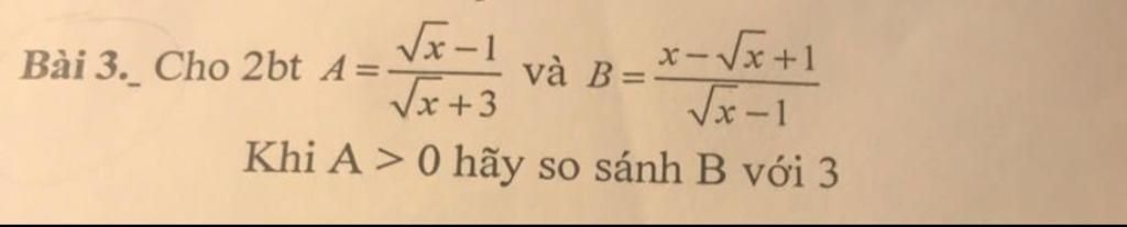 $→\dfrac{(\sqrt x-2)^2}{\sqrt x-1}\ge 0$ hay $B-3\ge 0$