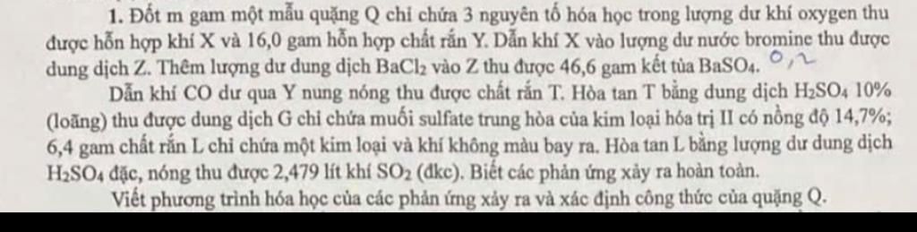 1. Đốt m gam một mẫu quặng Q chỉ chứa 3 nguyên tố hóa học trong lượng dư khí oxygen thu