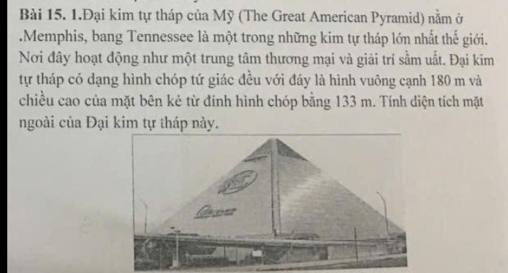 Diện tích một mặt bên của kim tự tháp là:
