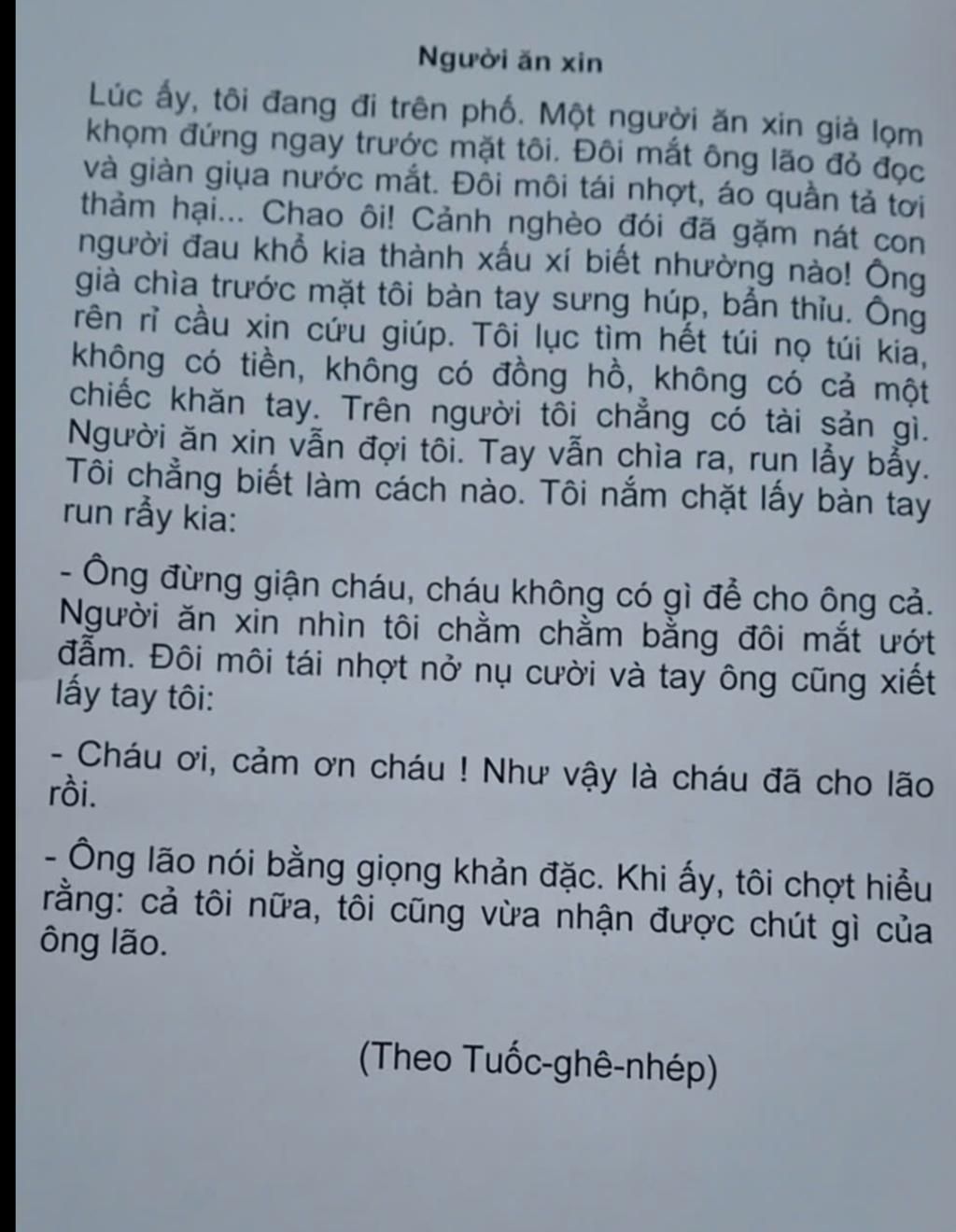 Lúc ấy, tôi đang đi trên phố. Một người ăn xin giả lọm