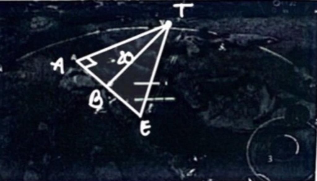 Elsu và Tel'Annas là xạ thủ nổi tiếng trong Liên Quân Mobile, với Elsu bắn tỉa cần nhắm bắn kẻ địch từ 1 khoảng cách cố định . Trên hình, tại vị trí đứng của Elsu (điểm E) cách vị trí của Tel'Annas (điểm T) là 32m thì Elsu thấy khó bắn trúng, nếu khoảng cách là 20m thì bắn sẽ chính xác hơn (đoạn BT), nên Elsu quyết định đi men theo tường đá để ẩn thân tới vị trí B để bắn. Hỏi Elsu đã di chuyển bao nhiêu mét (đoạn EB) và khi đến B Elsu quay súng về hướng Tel'Annas (điểm T) một góc bao nhiêu độ? Biết `hat[TAB]=90^@`, `TA=16m`, `A`, `B`, `E` thẳng hàng.
