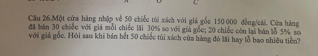 Số tiền lãi sau khi bán hết `50` chiếc túi xách là :