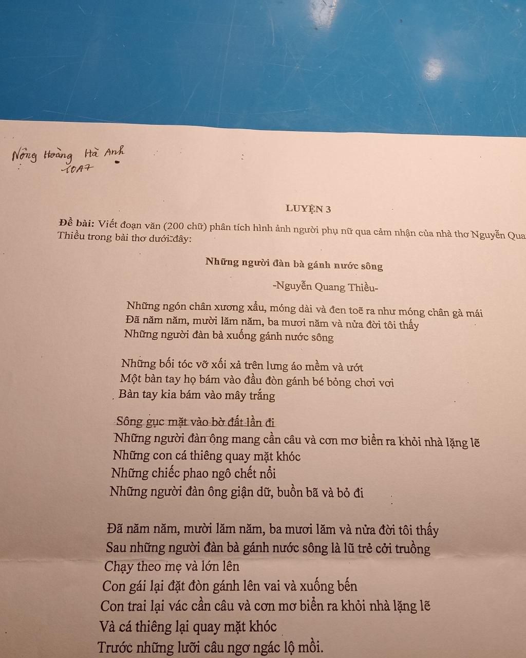 Viết đoạn văn 200 chữ phân tích hình ảnh người phụ nữ qua cảm nhận của nhà thơ Nguyễn Quang Thiều