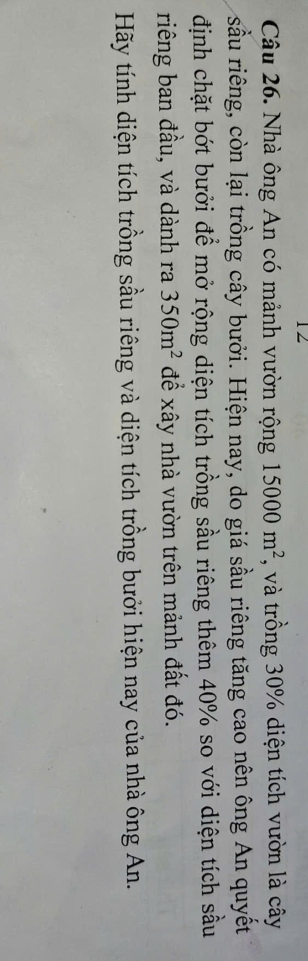 Diện tích trồng sầu riêng ban đầu là: