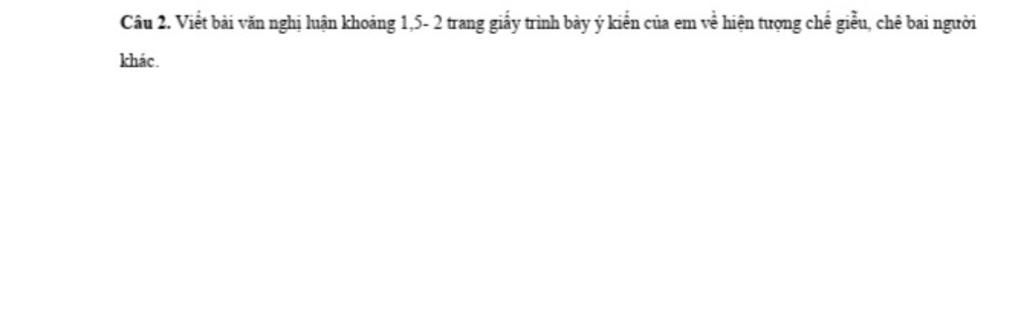 Tóm lại, hiện tượng chế giễu, chê bai người khác là một hành vi gây tổn thương và ảnh hưởng tiêu cực đến xã hội. Mỗi cá nhân cần nhận thức và có trách nhiệm hơn trong lời nói và hành động của mình. Chỉ khi mỗi người đều có ý thức tôn trọng và sẻ chia, xã hội mới có thể trở nên tốt đẹp hơn, nơi mà mỗi cá nhân đều được đối xử công bằng và được trân trọng.
