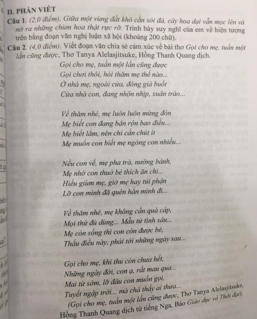 Câu 1. (2,0 điểm). Giữa một vùng đất khô cằn sỏi đá, cây hoa dại vẫn mọc lên và