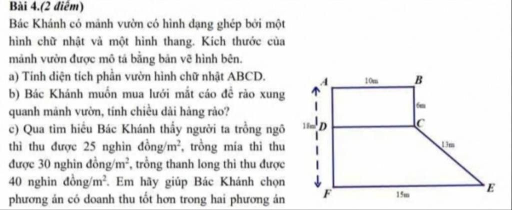 Bác Khánh có mảnh vườn có hình dạng ghép bởi một