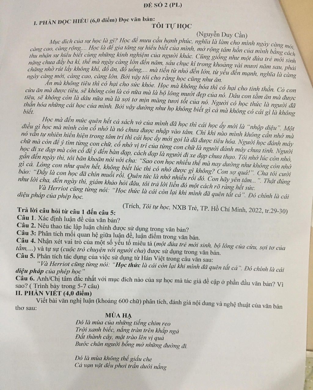 I. PHẦN ĐỌC HIỂU (6,0 điểm) Đọc văn bản:
