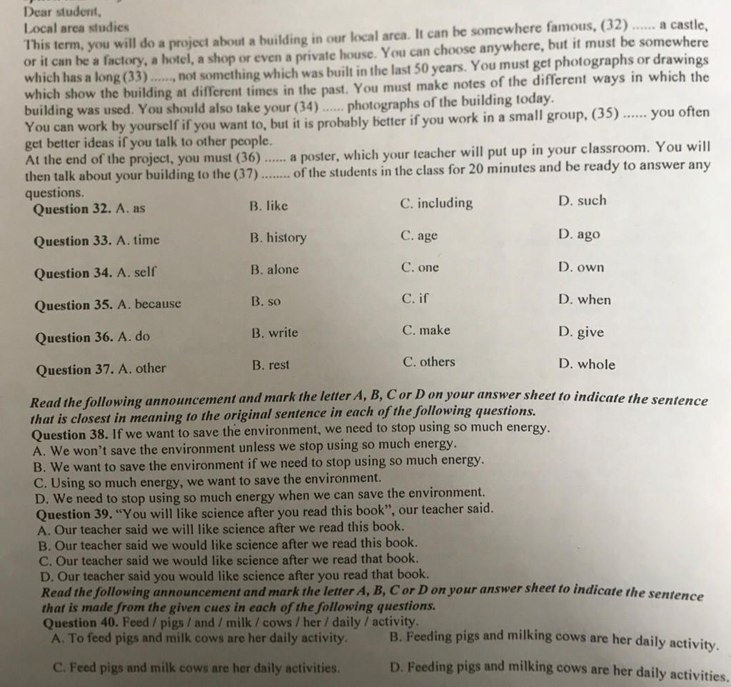 This term, you will do a project about a building in our local area. It can be somewhere famous, (32) ...... a castle,