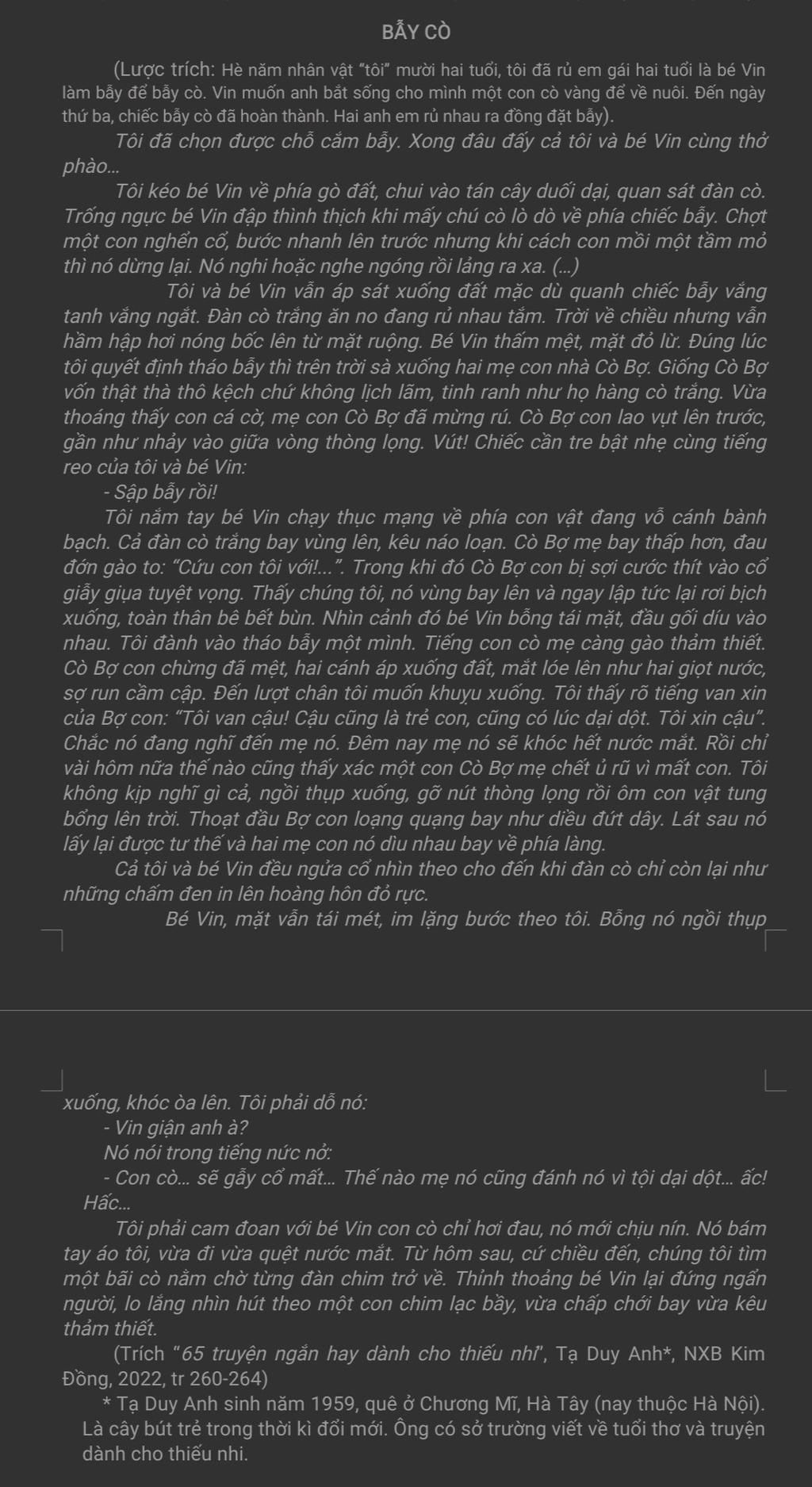 làm bẫy để bẫy cò. Vin muốn anh bắt sống cho mình một con cò vàng để về nuôi. Đến ngày