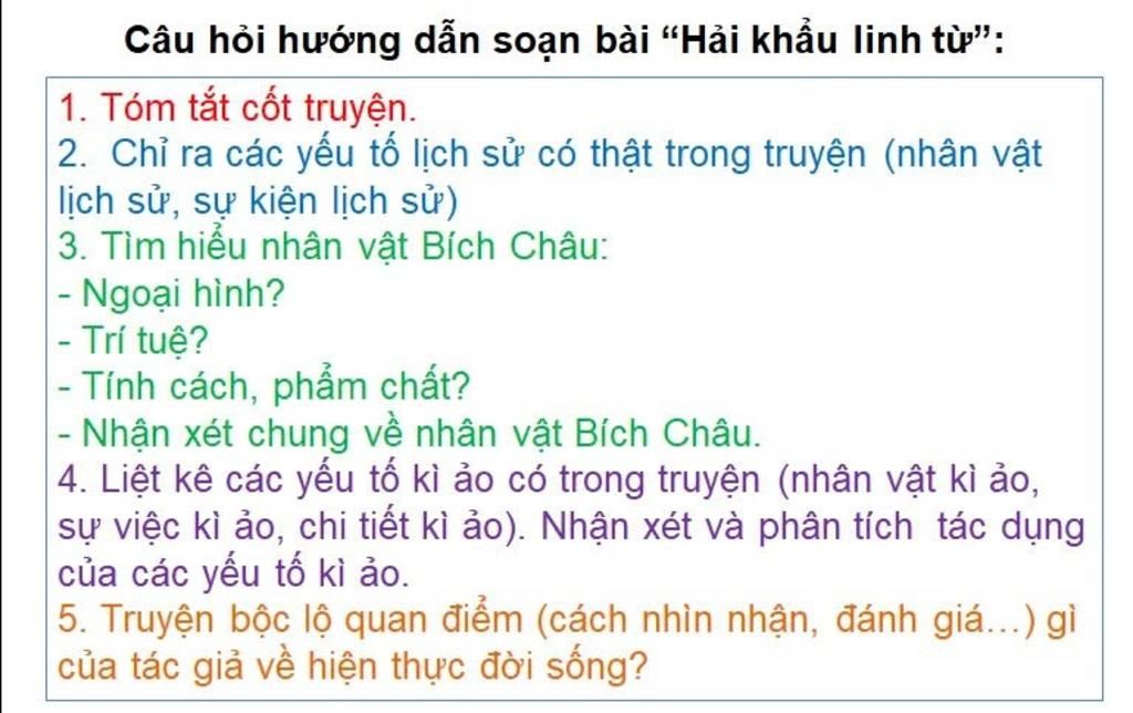 Câu hỏi hướng dẫn soạn bài “Hải khẩu linh từ”: