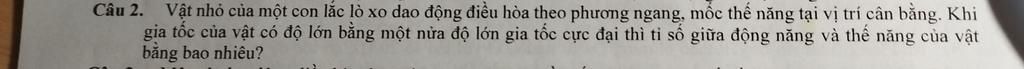 {{\rm{W}}_t} = \dfrac{1}{2}k{x^2} = \dfrac{1}{2}k{\left( {\dfrac{A}{2}} \right)^2} = \dfrac{1}{4}.{\rm{W}}\\