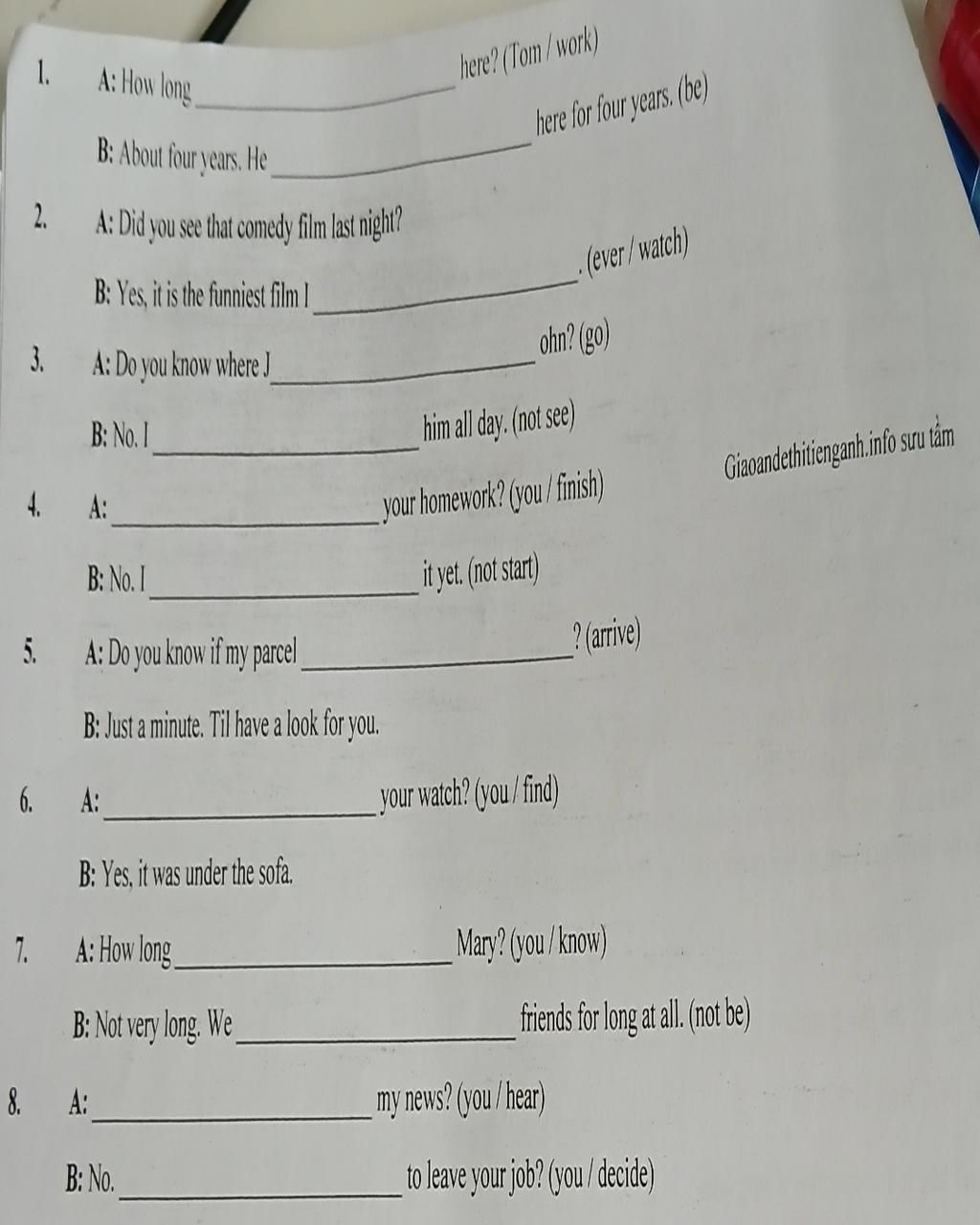 Complete the conversations with the present perfect form of the verbs in brackets
