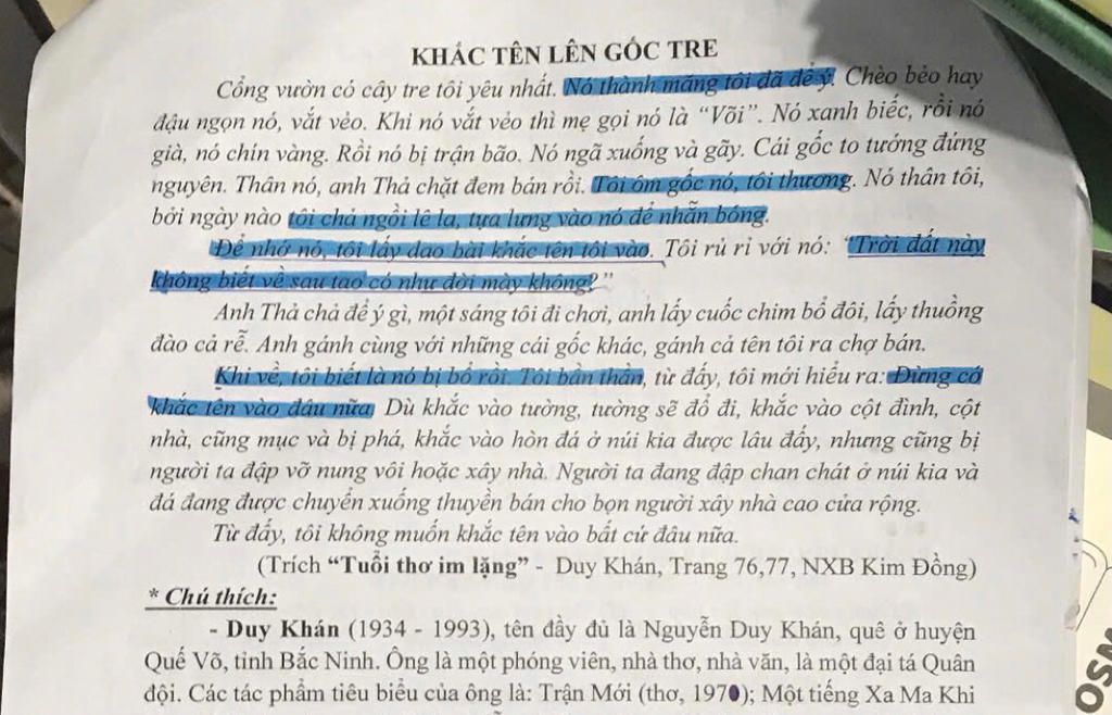 Mỗi con người trong suốt hành trình cuộc đời đều mang trong mình những ký ức tuổi thơ gắn liền với những hình ảnh thân thuộc, như cây cối, con vật hay những vật dụng trong gia đình. Những ký ức ấy không chỉ là những hình ảnh mà còn là cảm xúc, là những bài học cuộc sống sâu sắc. Trong tác phẩm "Khắc tên lên gốc tre", nhà văn Duy Khán đã khắc họa một cách sinh động hình ảnh cây tre - biểu tượng của làng quê, của tuổi thơ gắn bó và yêu thương. Qua nhân vật "tôi", tác giả không chỉ thể hiện sự gắn bó sâu sắc với thiên nhiên mà còn gửi gắm những suy tư về cuộc sống, về sự vô thường của thời gian, về sự thay đổi không thể tránh khỏi.