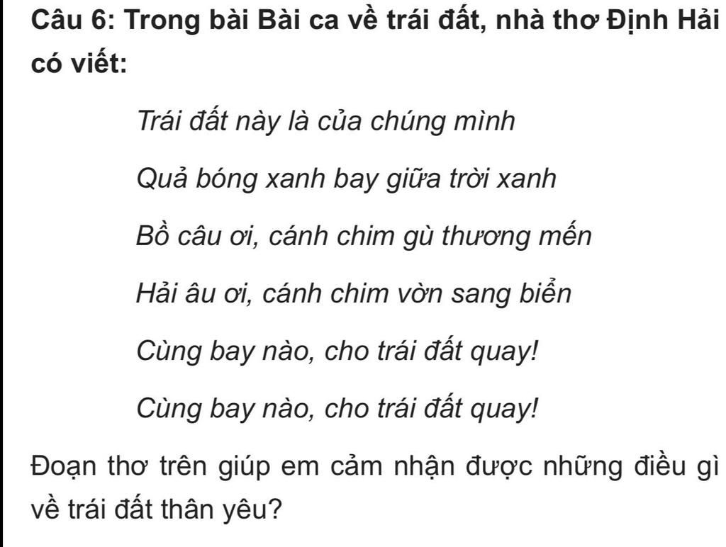 đoạn văn trên giúp e hiểu dc trái đất thật rộng lớn và vô cùng đẹp