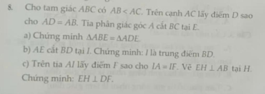 suy ra ΔABE = ΔADE(c.g.c)(đpcm)