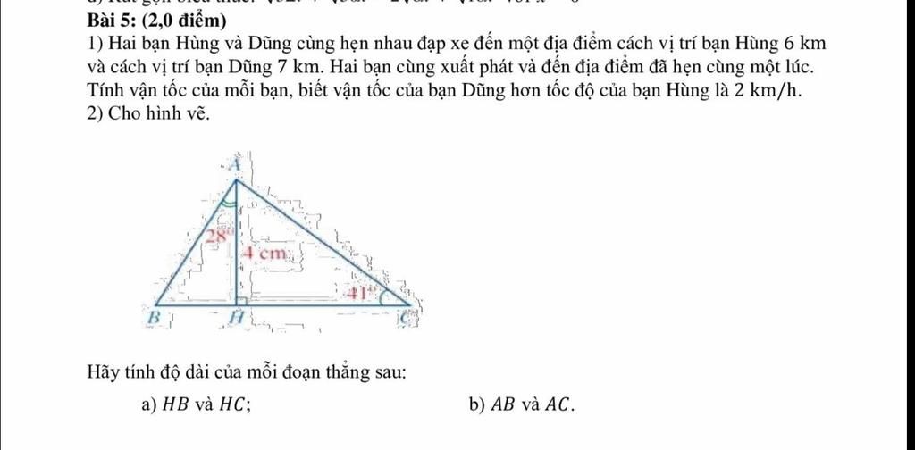 Gọi tốc độ của bạn Hùng là `x (km//h) (x>0).` Khi đó, tốc độ của bạn Dũng là `x+2 (km//h). `
