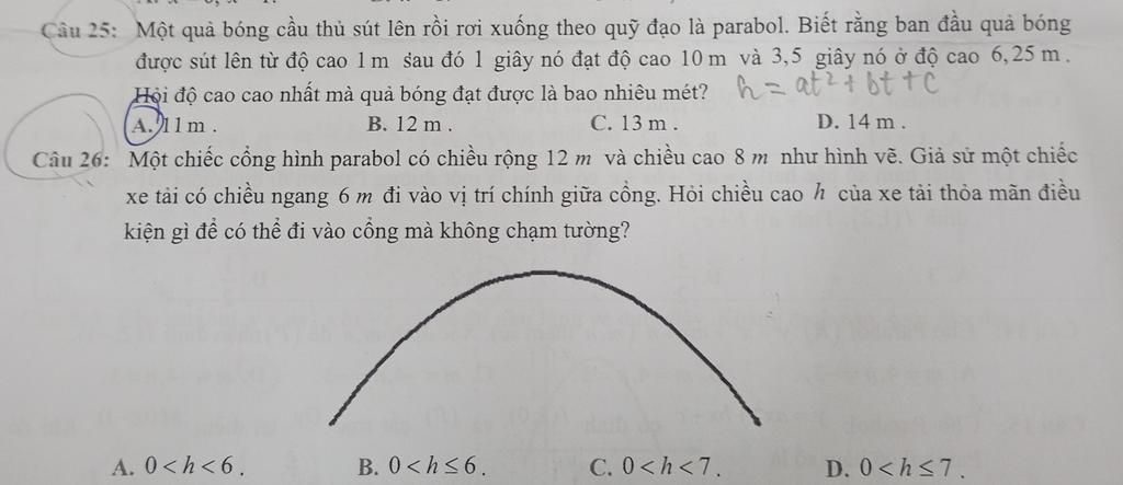 Sau đó `1` giây quả bóng đạt độ cao `10m;3,5` giây đạt độ cao `6,25m`