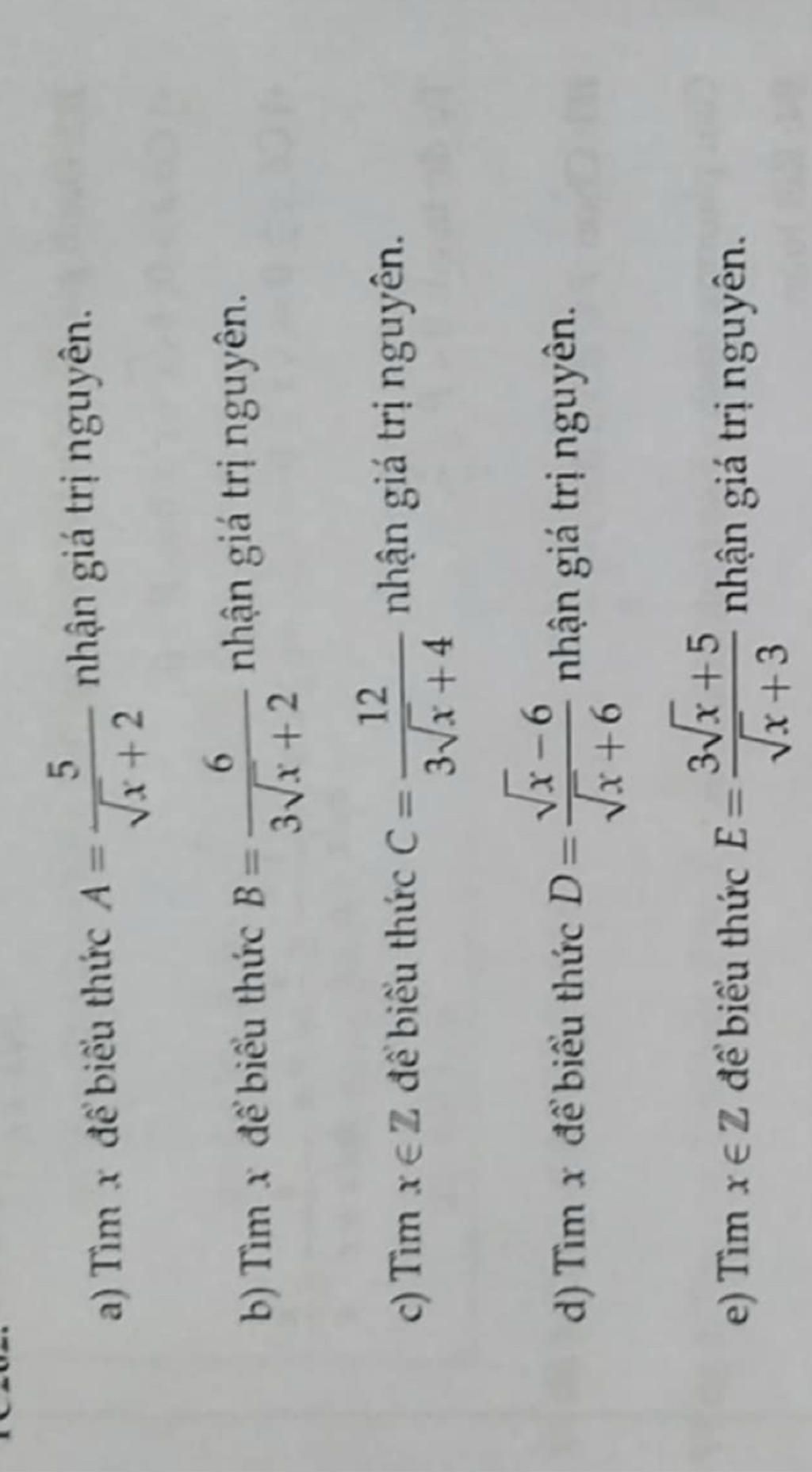 e) Tìm x ∈ Z để biểu thức E=