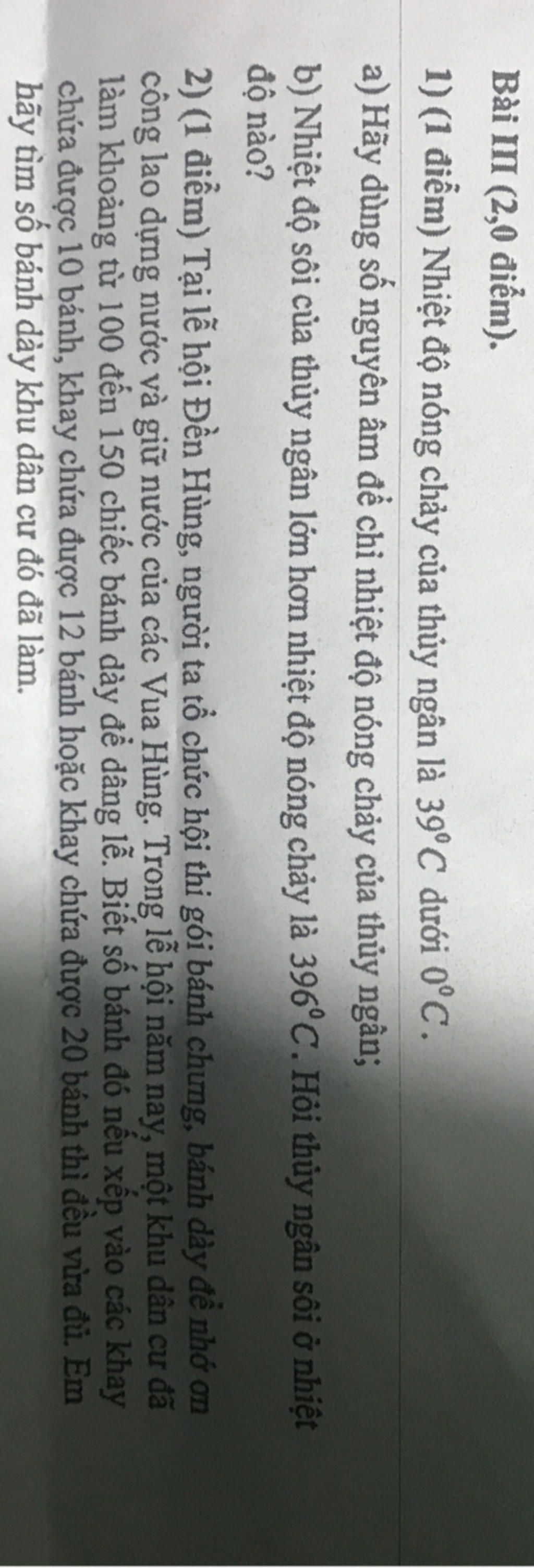 1) a) Nhiệt độ 39∘C dưới 0∘C là số âm cho nên nhiệt độ nóng chảy của thủy ngân là −39∘C