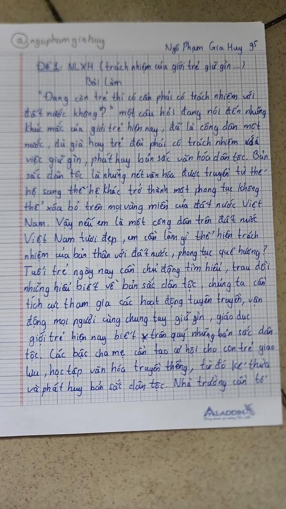 Hiện nay, giới trẻ ít quan tâm đến những sản phẩm văn hoá truyền thống mang đậm bản sắc dân tộc như các trò chơi dân gian, những làn điệu dân ca, hát xẩm, các vở tuồng, chèo, trang phục, món ăn truyền thống... Trong khi đó, việc tìm hiểu và phát huy bản sắc văn hoá truyền thống dân tộc là một trong những trách nhiệm của giới trẻ - chủ nhân tương lai của đất nước. Hãy viết bài văn nghị luận (khoảng 400 chữ) bản về vấn đề trên.