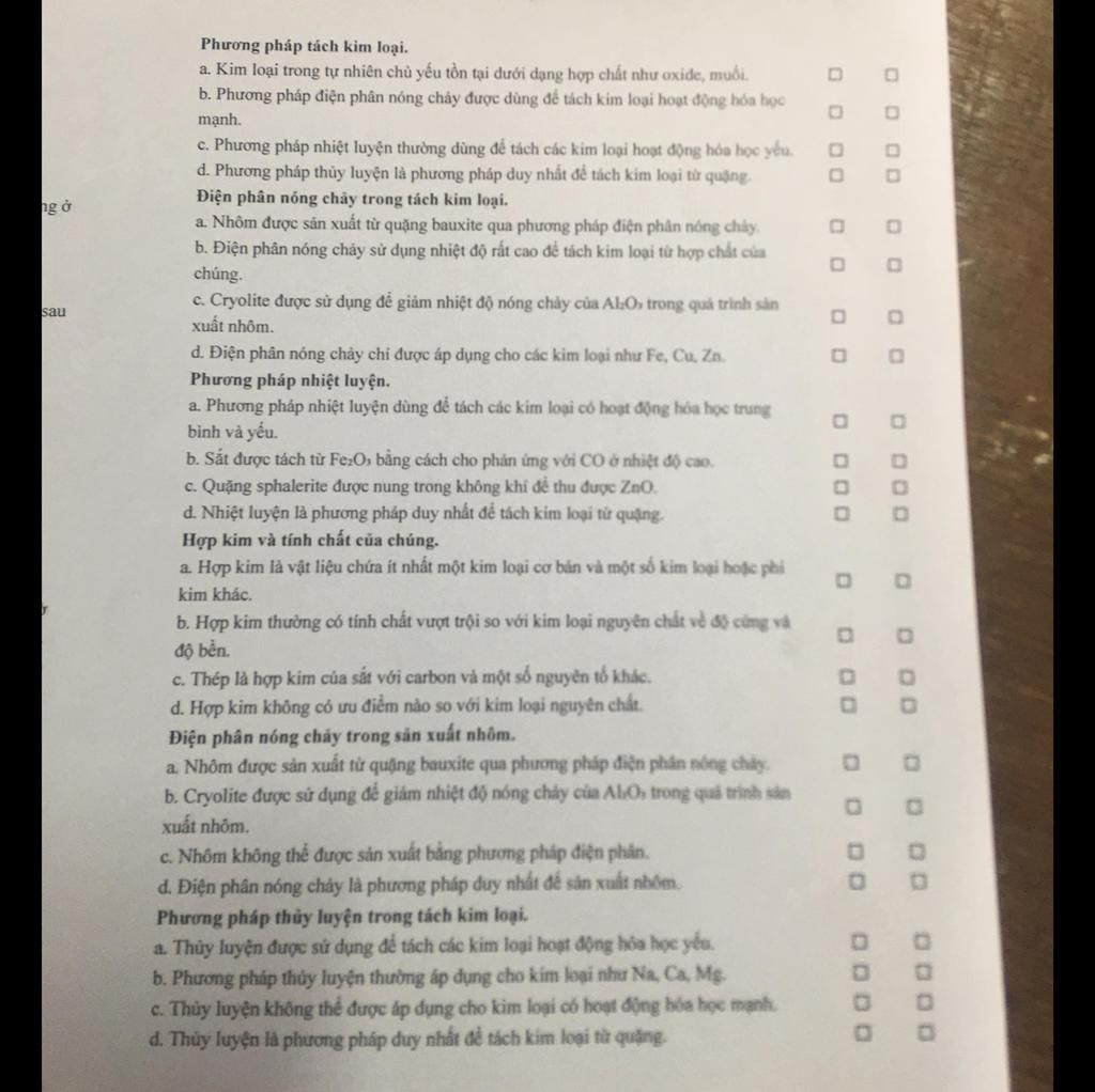 c. Phương pháp nhiệt luyện thường dùng để tách các kim loại hoạt động hóa học yếu.