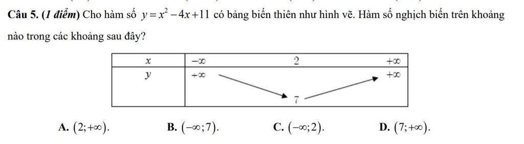 `->` Hàm số nghịch biến trên `(-infty;2)`