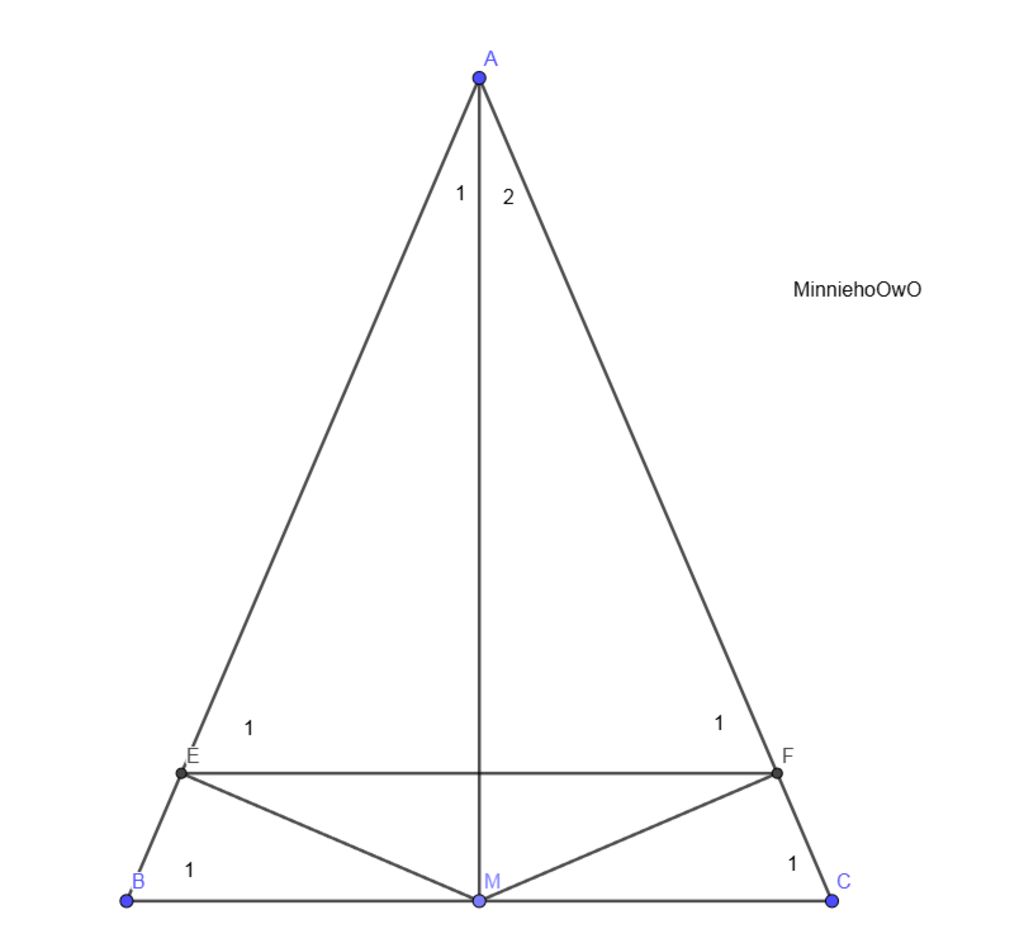 Do đó : `ΔAEF` cân tại `A -> hat(E_1)= hat(F_1) = (180^o-hat(A))/2`