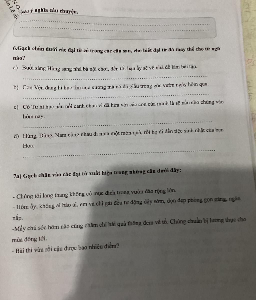 7b) Xếp các đại từ vừa tìm được vào các nhóm sau: