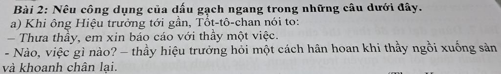 "-" ngang câu: Thưa thầy.... với thầy một việc: