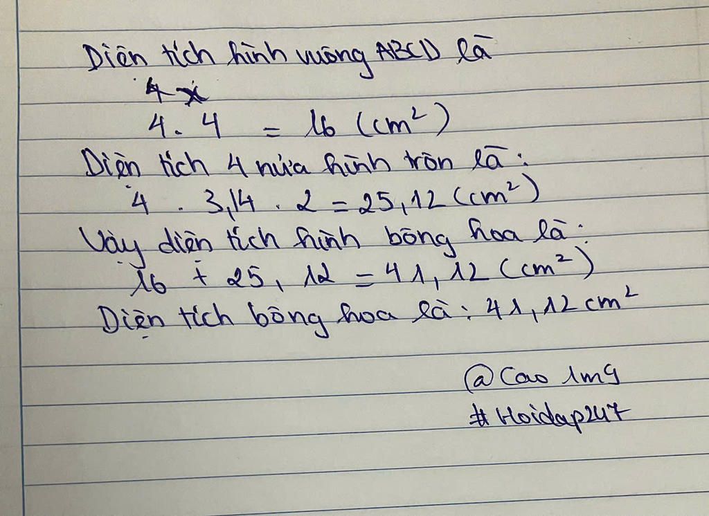 cậu ơi phần diện tích 4 nửa hình tròn có dk v?