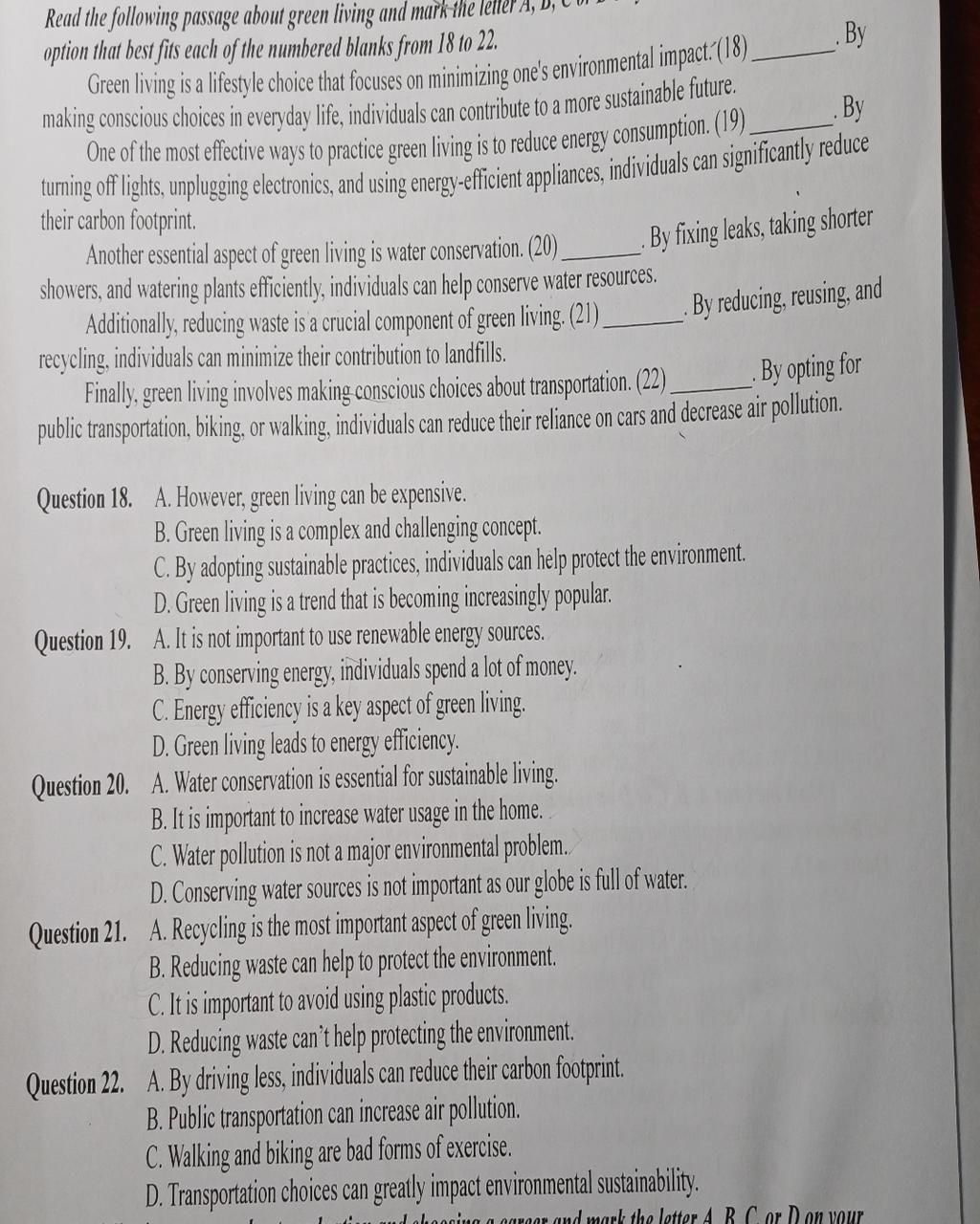 Giải thích:Gợi ý hợp lý về việc bắt đầu chủ đề về lối sống xanh.