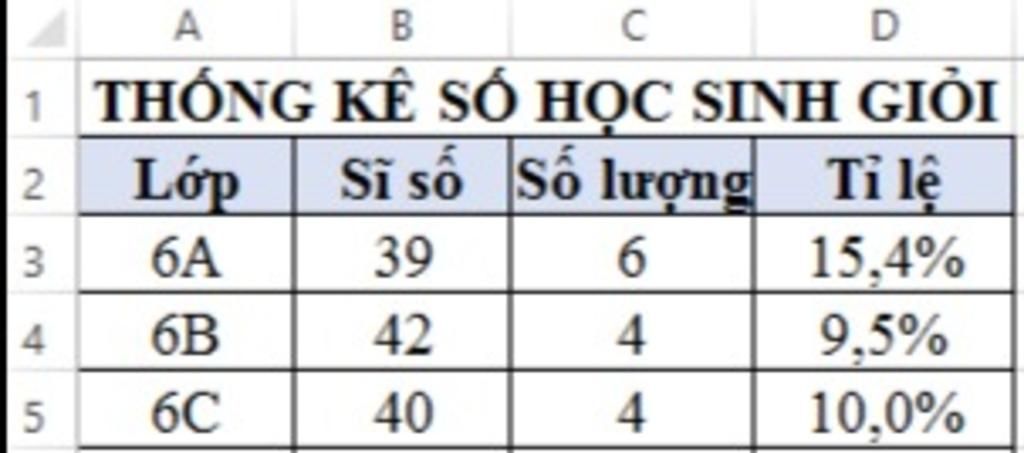 Cho bảng thống kê số học sinh giỏi dưới đây.