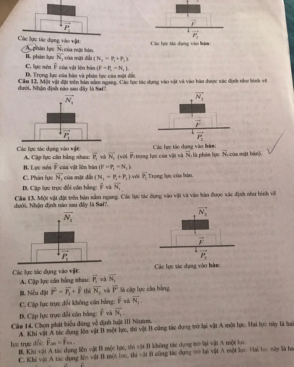 \(F\) và \({N_1}\) là cặp lực cân bằng, không phải lực trực đối.