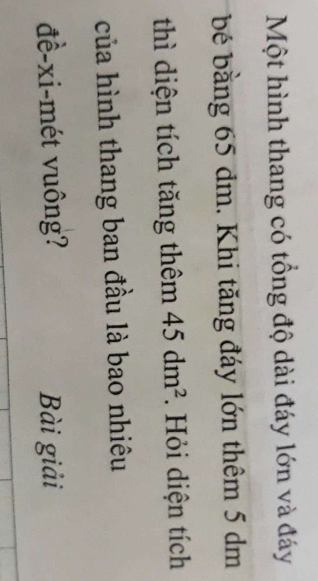 Chiều cao phần diện tích tăng thêm chính là chiều cao hình thang`.`