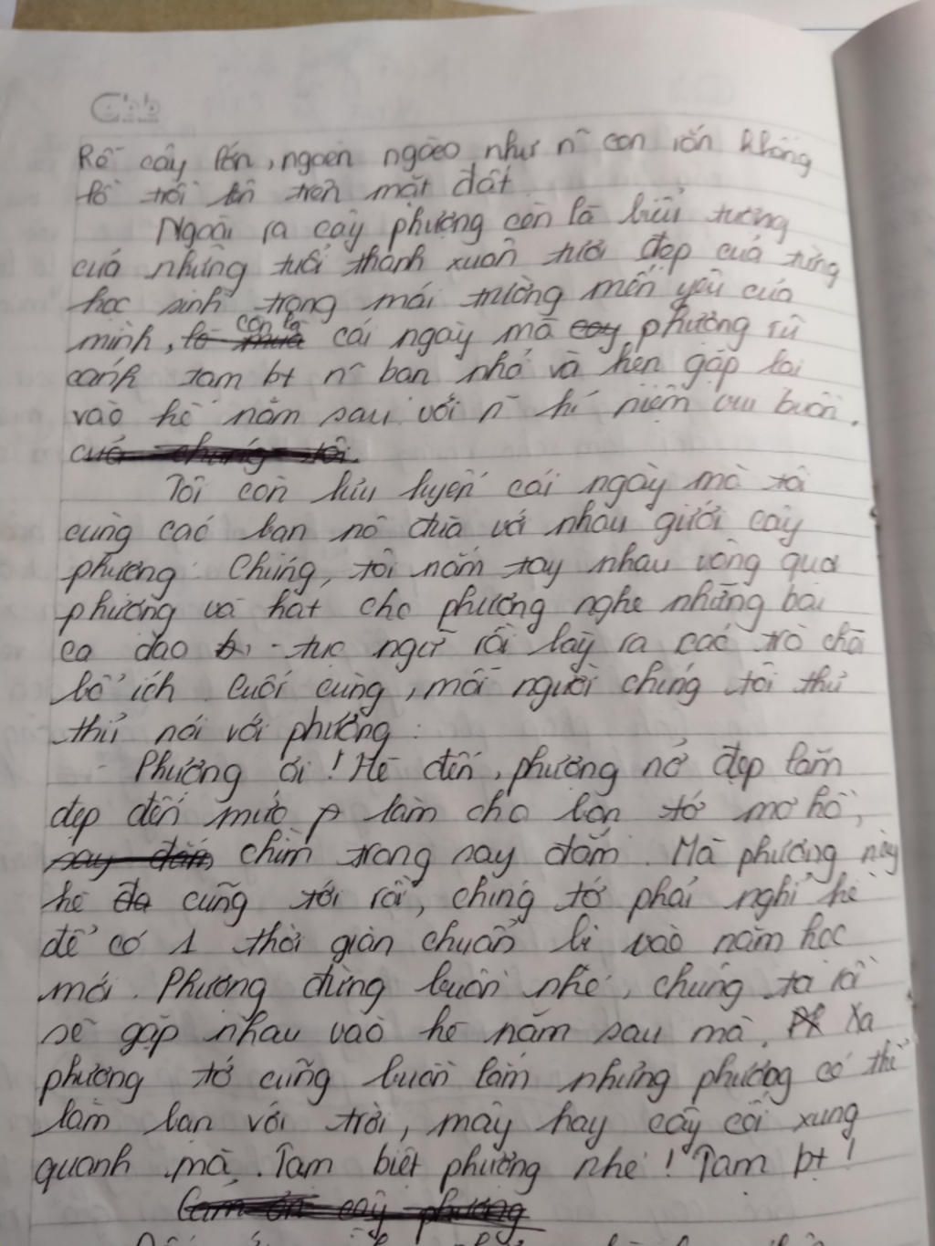 Cây phượng vẫn đứng đó chứng kiến bao lớp học sinh đã trưởng thành từ đây. Dù xa trường nhưng em sẽ nhớ mãi về cây phượng như một người bạn của một thời học sinh.