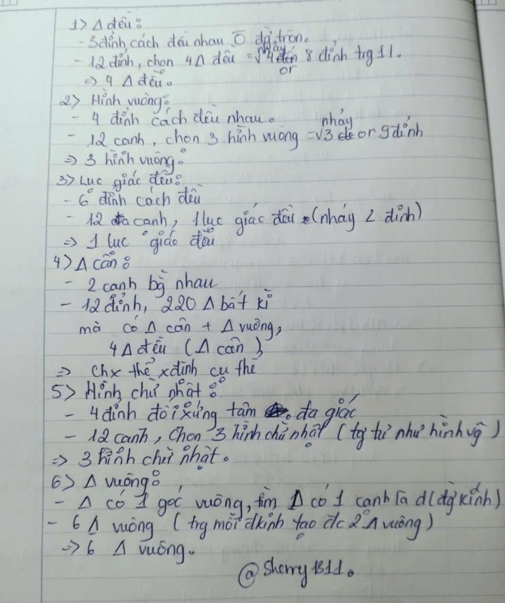 Cho đa giác đều 12 cạnh. Hỏi trong các đỉnh của đa giác có thể tạo được bao nhiêu