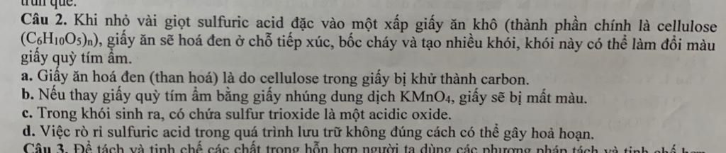 `a)` `H_2SO_4` đặc làm cellulose bị than hóa.