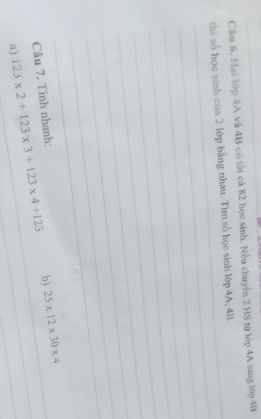 Đáp số : lớp `4A : 42` `học` `sinh` `;` lớp `4B` : `40` `học` `sinh`