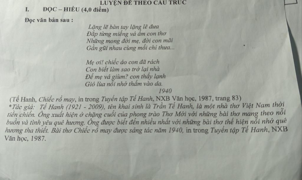 Câu 2 Xác định hình ảnh được sử dụng để hoán dụ với người mẹ trong bài thơ