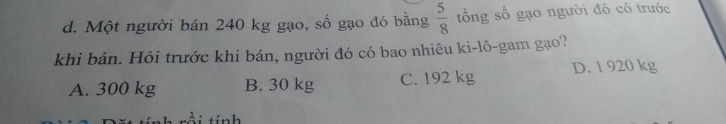 Gọi số gạo trước khi bán là `a,` số gạo sau khi bán là `b.`