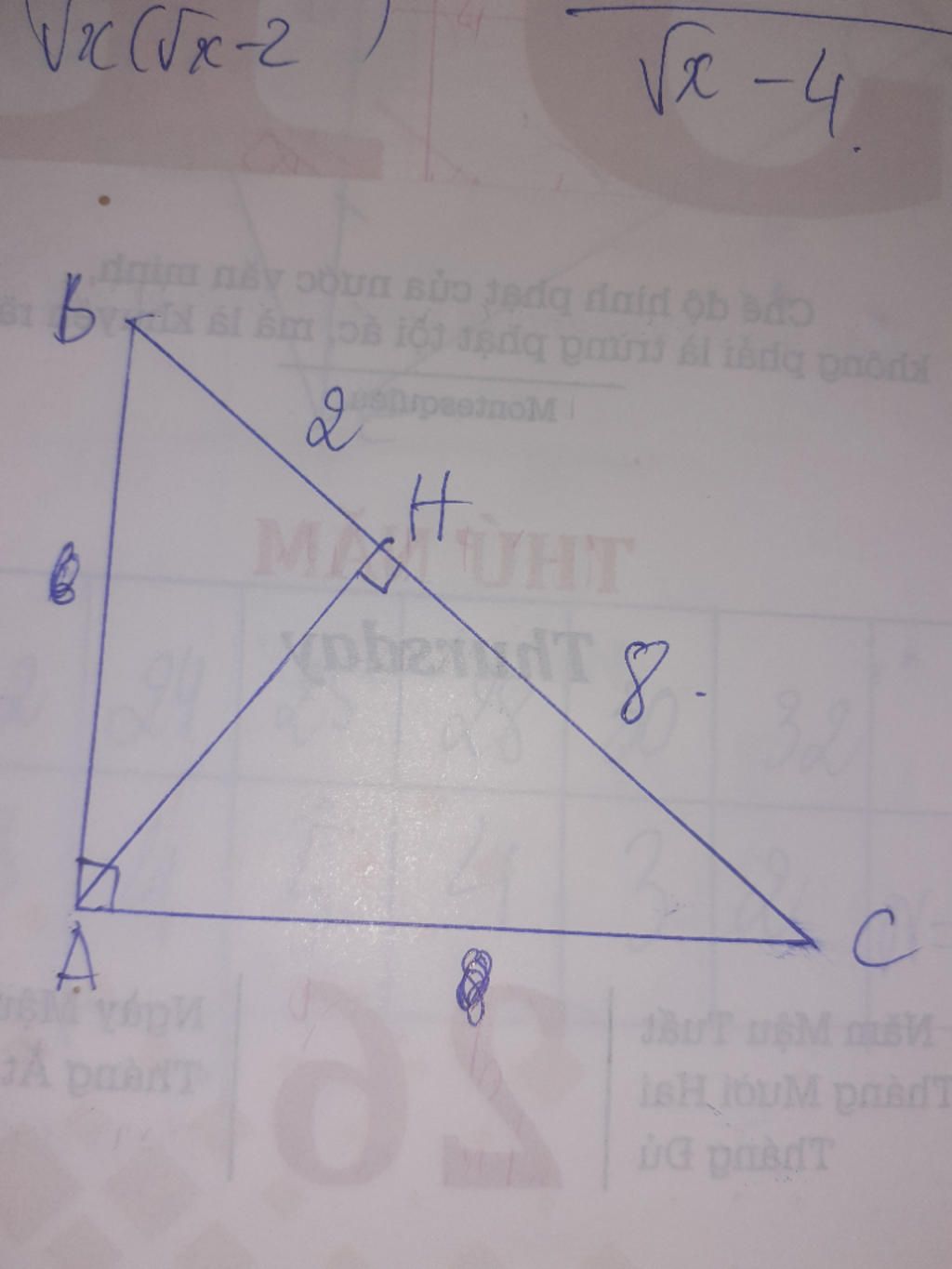 Từ (1) và (2) => AH = $\frac{1}{2}$ BC = 4 (cm)