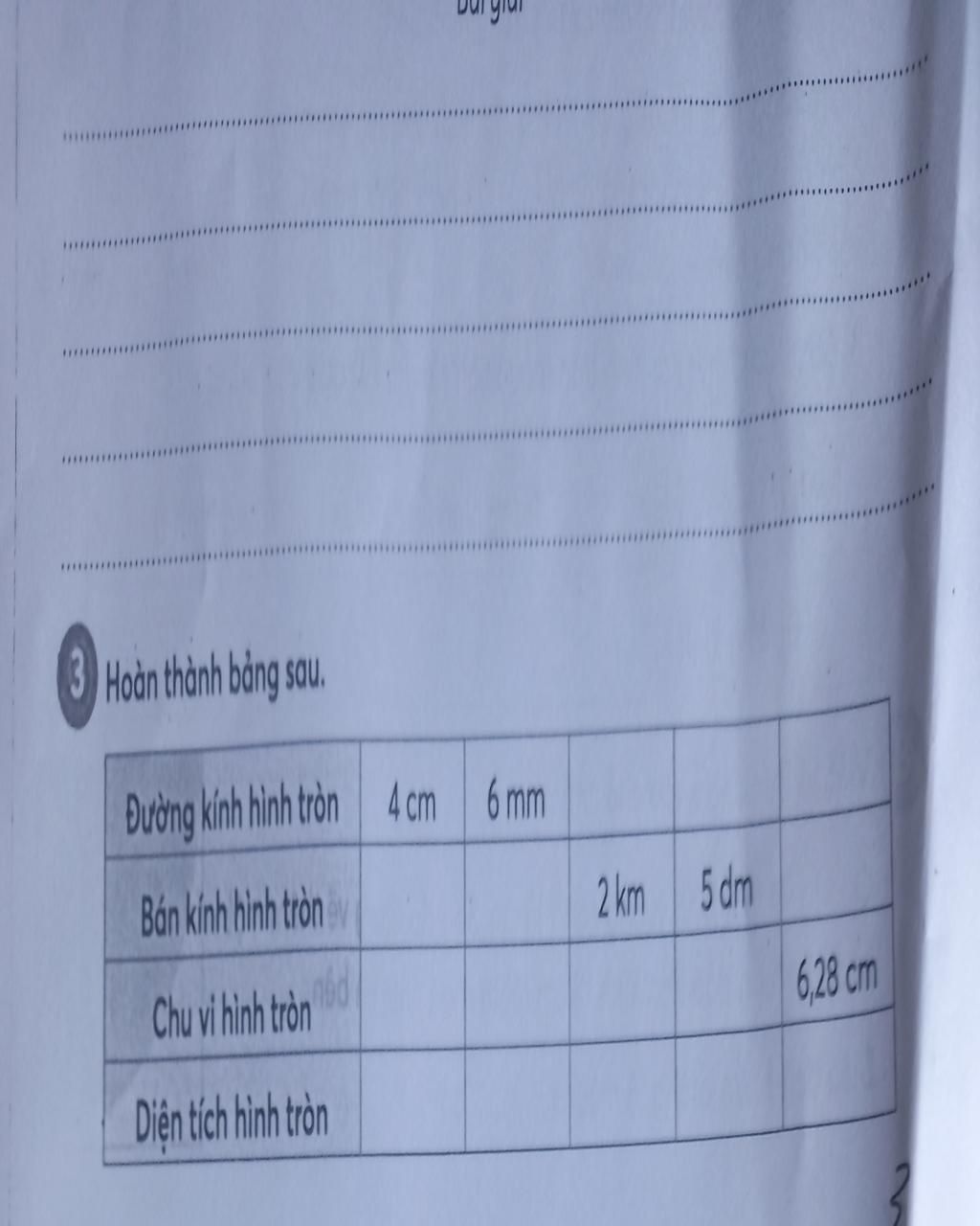 Đường kính hình tròn là: `6,28 : 3,14 = 2` `(` `cm` `)`