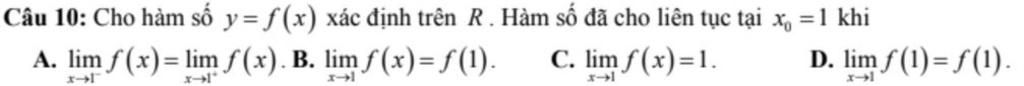 Để hàm số liên tục tại `x=x_0` thì `lim_(x->x_0) f(x) = f(x_0)`
