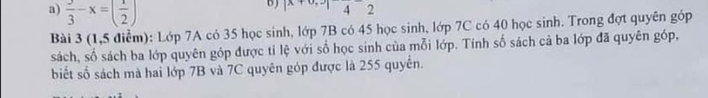 Gọi `x;y;z` lần lượt là số sách quyên góp của `7A;7B;7C (x;y;z in N`*`)`