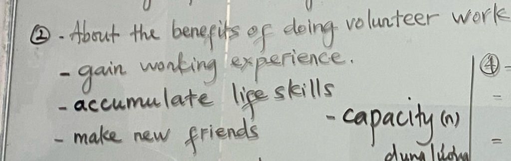 Write a short paragraph (80- 100 words) about the benefits of doing volunteer work, dựa theo gợi ý đã cho ạ
