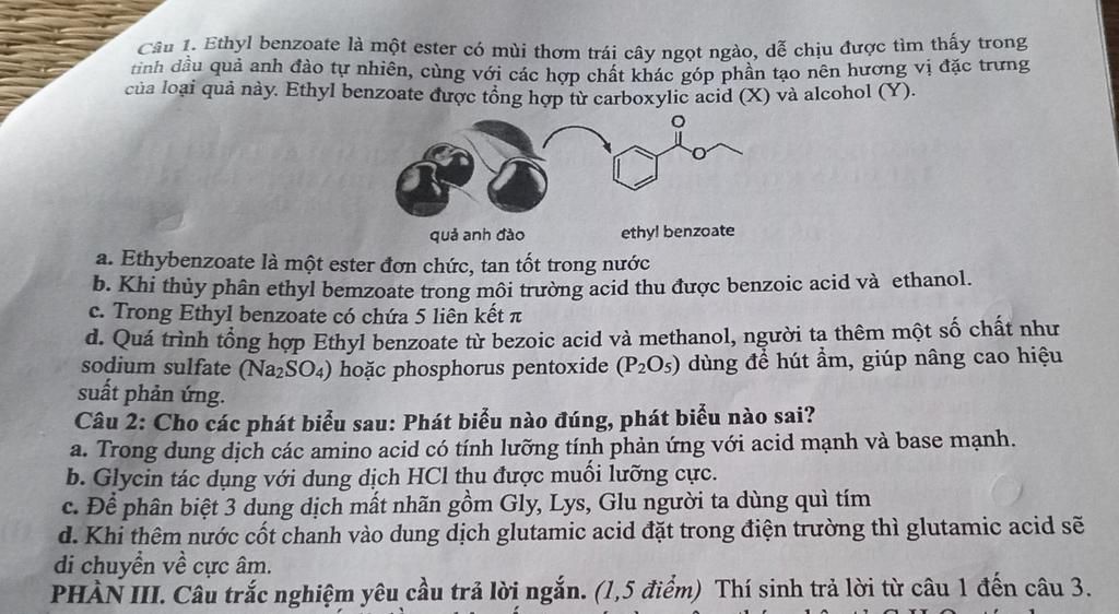 Tổng hợp ethylbenzoate từ ethanol chứ không phải methanol