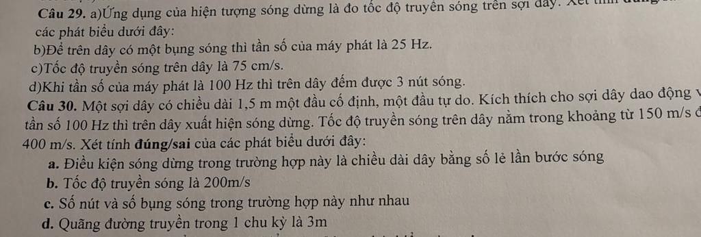 a) Do sợi dây có 1 đầu cố định, 1 đầu tự do nên điều kiện có sóng dừng là chiều dài dây = số lẻ lần nửa bước sóng.