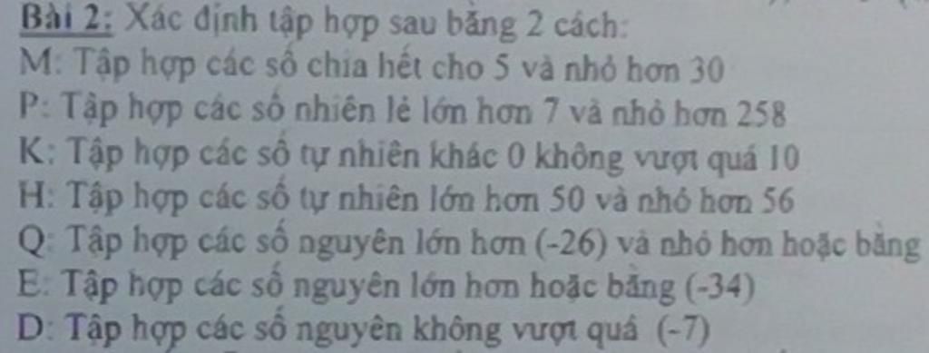 Bài 2: Xác định tập hợp sau bằng 2 cách: